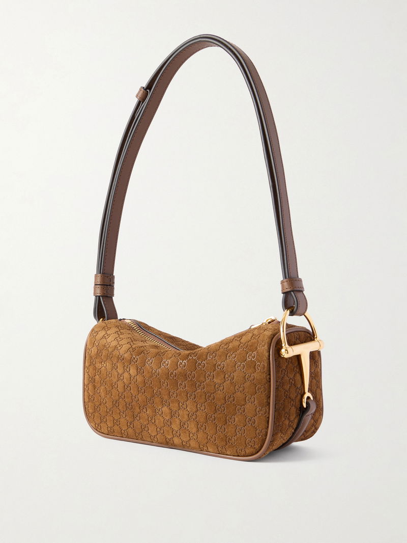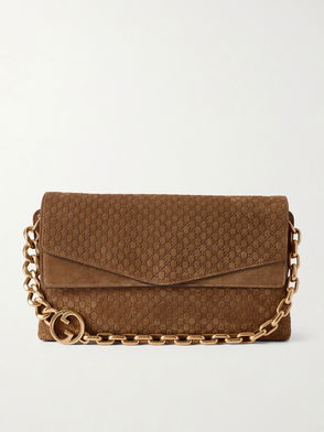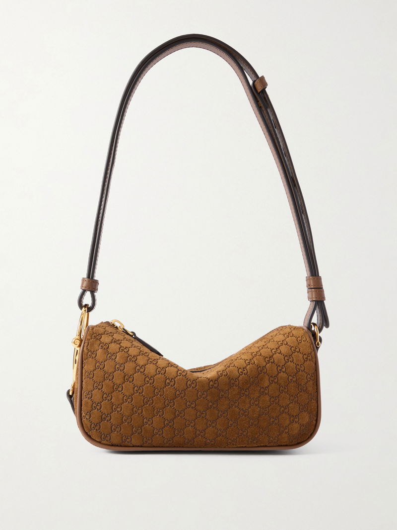Logo-debossed Leather-trimmed Suede Shoulder Bag