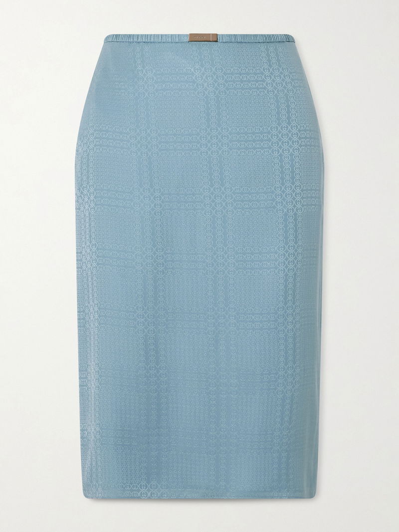 Shop More: Blue Clothing GUCCI Clothing Blue Skirts Blue Midi Skirts GUCCI Blue Clothing GUCCI Skirts GUCCI Midi Skirts
