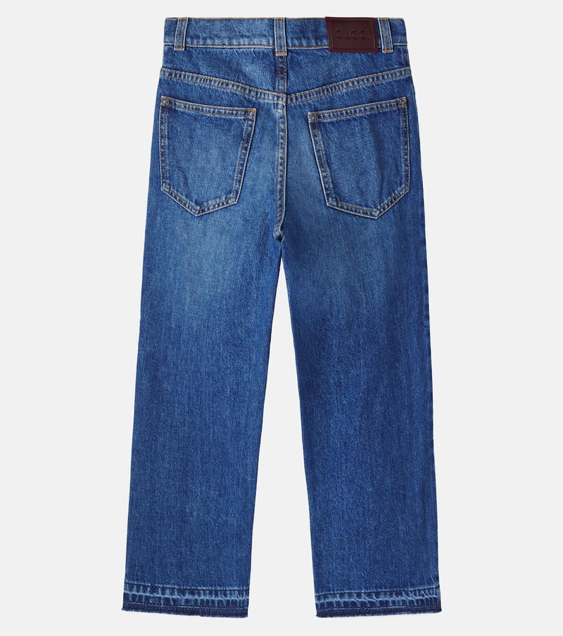 Dress them in signature styles from Gucci Kids. These jeans are carefully crafted in Italy from dark-washed denim and feature silver-toned hardware and contrasting stitch details.