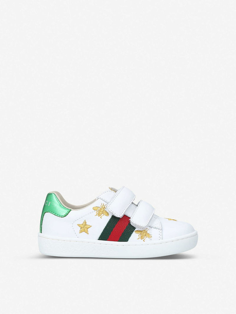 Selfridges Says: Be still, my swooning, Gucci fan-girl heart. These New Ace bee and star mini trainers, with signature details including original ‘70s archival bee motif, star embellishment, Gucci logo across the metallic heel panel and the iconic red and green grosgrain ribbon, are just about enough reason to have another baby. Wearing these, your toddler will be the most comfortable, coolest infant on the block.