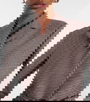 Gucci woven-blend blazer. Exposed button fastenings at front Regular fit, notched lapels, long sleeves, two buttoned patch pockets at front, all-over metallic threads, cropped, lined.