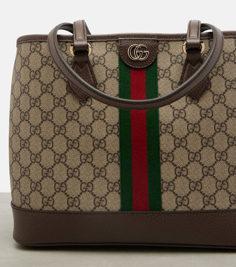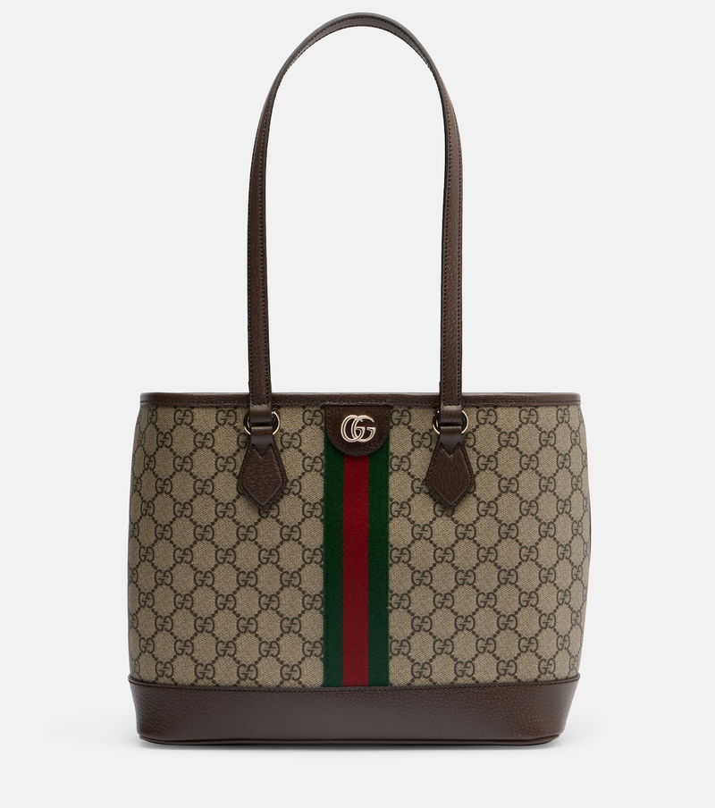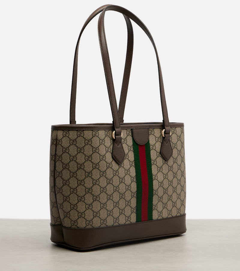 This Ophidia tote bag from Gucci is crafted from signature coated GG Canvas and detailed with leather trims. The Medium-sized design is finished with the distinctive Web Stripe detail on the front.