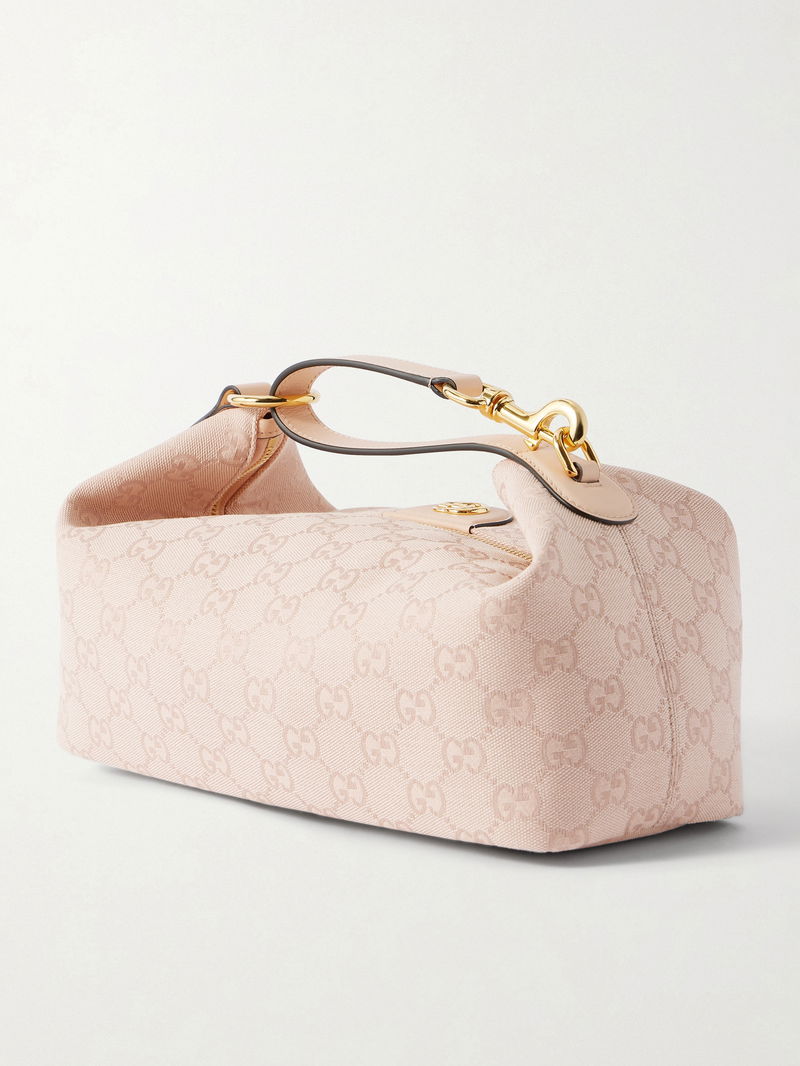 Inspired by classic beauty cases, Gucci's 'Ophidia' clutch is endlessly versatile, and can be carried three different ways. It's been crafted in Italy from monogrammed canvas-jacquard and is outlined with an adjustable leather strap that can be hand-held or worn over the shoulder. -Materials: 100% Calf Leather