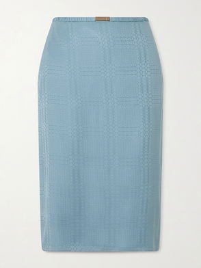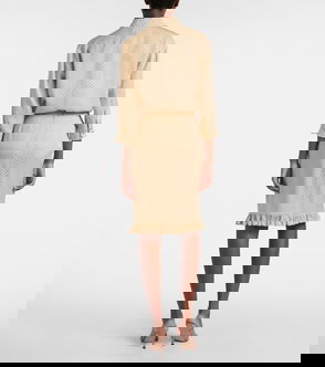 Gucci's pink-beige midi skirt conveys an ethereal mood with whisper-weight chiffon, blended with a hint of silk for added lustre. It's crafted in Italy with a high-rise waist and precise pleats, then lined with fluid crepe, emphasising the gossamer fabric. Add a hooded sweatshirt for an effortless guise or opt for a satin cami top after dark.