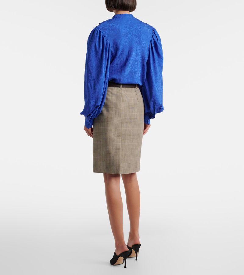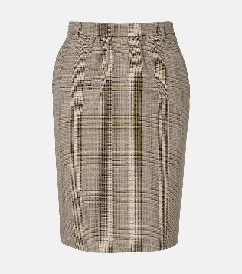 Prince Of Wales Check Wool Pencil Skirt