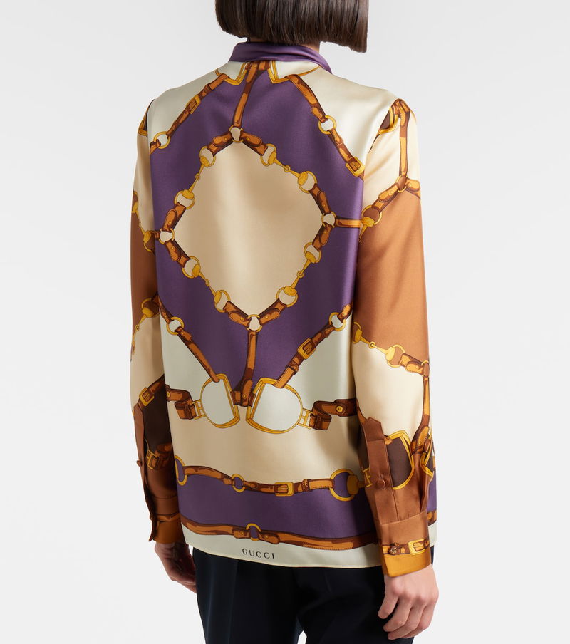 Printed Tie-neck Silk Twill Blouse