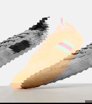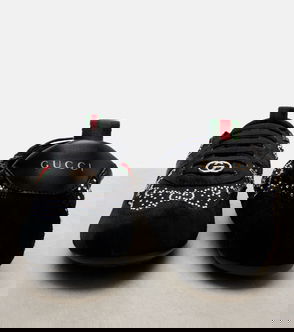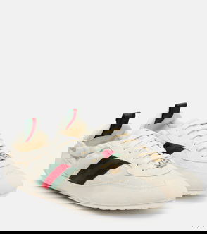 The Gucci Re-Motion sneakers are defined by their removable and adjustable ankle straps, complemented by the brand's GG print and Webstripe uppers. The design is complete with suede-trimming and lace-up closures.
