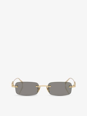 Black acetate frames surrounded gray-tinted lenses to compose these rectangle-frame sunglasses. Gucci's signature red and green Web detail is boldly displayed across the temples and finished with fine logo detailing. This style comes in a protective case, the color of which may vary.