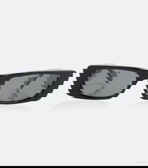 These half-rimmed rectangular sunglasses from Gucci feature a gold-toned metal frame and brown lenses. The style is accented with an Interlocking G logo at the temples and acetate tips.