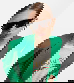 These sunglasses from Gucci stand out with distinct rectangular frames cut from durable acetate. The silhouette is complemented by logo lettering on both temples.