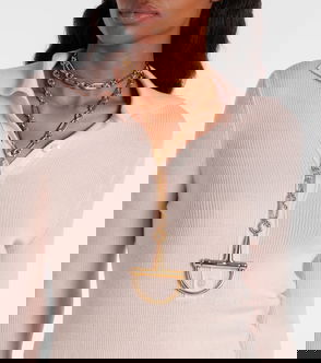 Gucci gold-toned metal necklace. Lobster-clasp fastening. Logo script detail, chain links, polished finish.