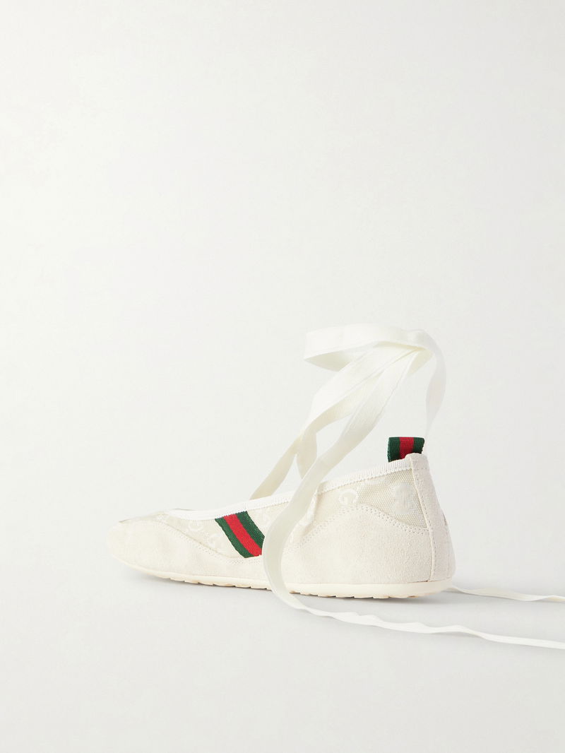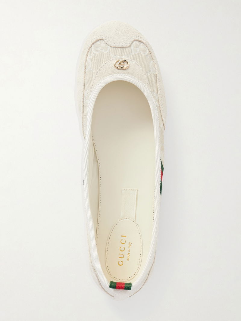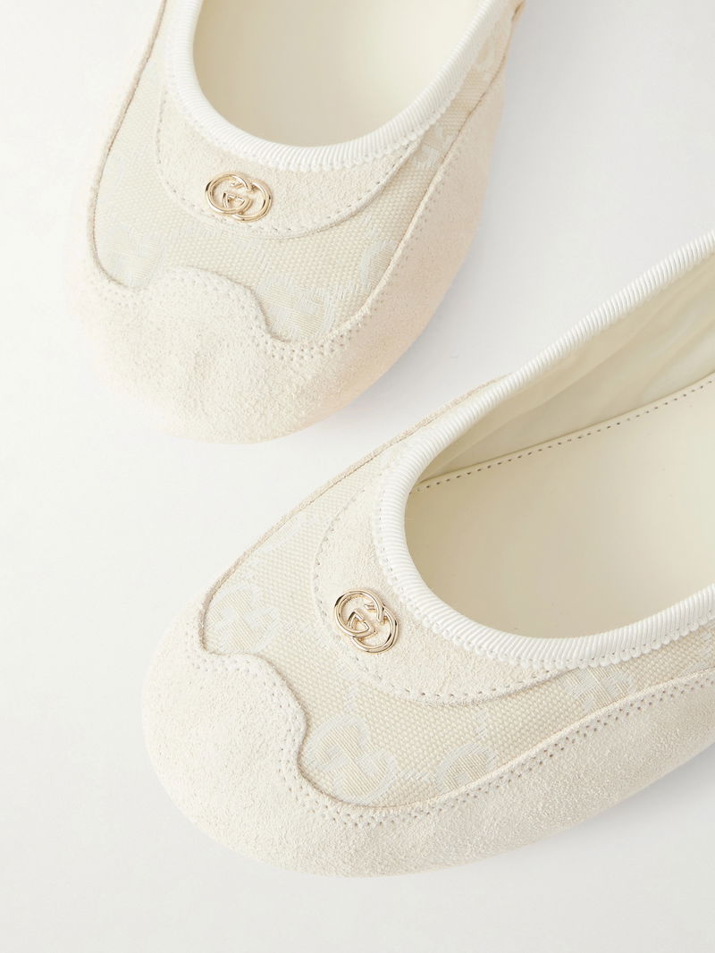Shift Webbing-trimmed Canvas-jacquard And Suede Ballet Flats