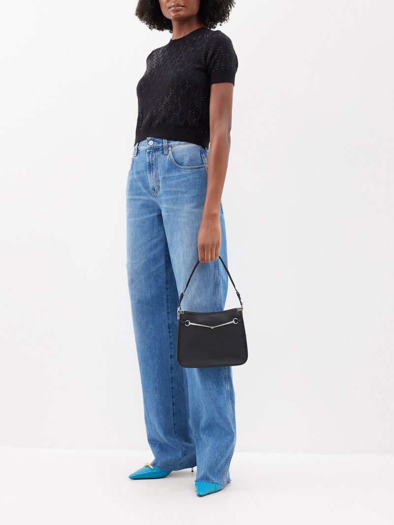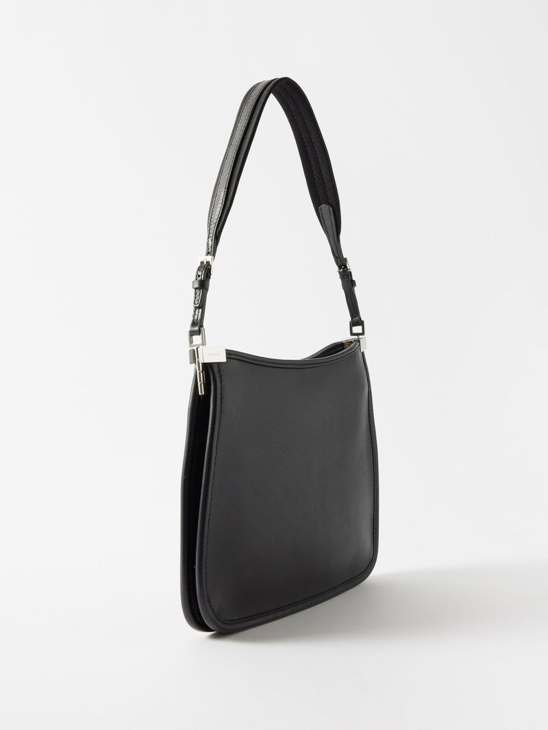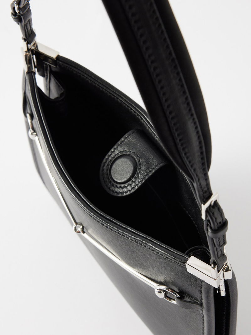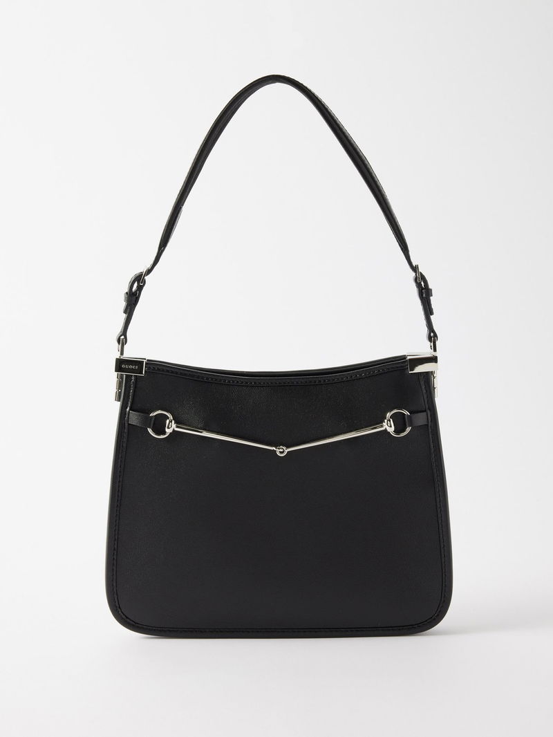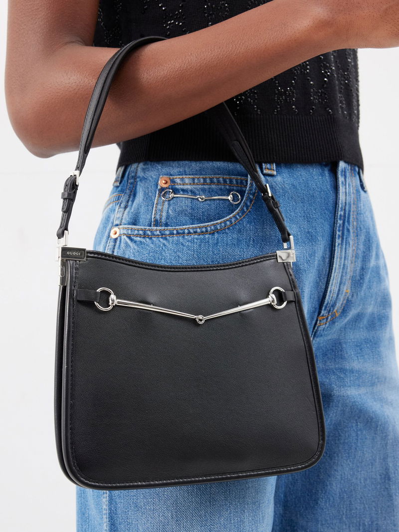 Gucci reworks archival 1990s styles for this black leather shoulder bag, designed with a slim frame and a minimal version of the Horsebit adorning the front.