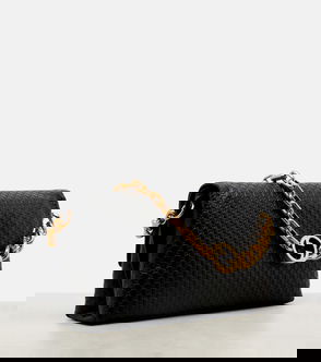 Gucci's tote features a half, magnified version of the label's signature horsebit plaque that also serves as the fastening. It's made from textured-leather in classic black and has a slouchy shape that'll fit comfortably under your arm. It's lined in smooth microfiber and has more than enough space for a continental wallet, phone, keys and small compact.