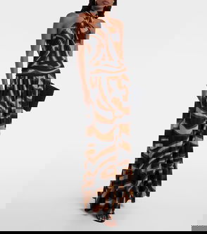 Gucci's black dress features tactile green terry appliqué that echoes elaborate damask motifs tracing back to Tang dynasty China. It's crafted in Italy from wool crepe with a lace-up neckline and fluted sleeves, then finished with long, swishing tassels at the hem. Add platform pumps to capture the house's off-kilter opulence.