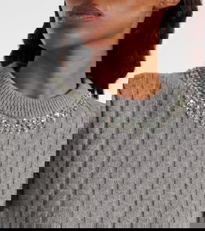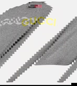 This ivory cable-knit sweater is embroidered with a graphic logo and blooming florals, evoking the playful spirit of Gucci's collaborative collection with The North Face.