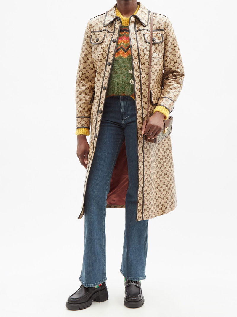 Drawing on vintage outdoors influences, Gucci X The North Face’s green Fair Isle sweater is knitted from an insulating mohair blend with a white intarsia logo.