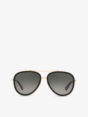 Putting the Italian fashion house's spin on a classic, these Gucci aviator sunglasses combine the label's signatures with vintage-inspired detailing. The polished golf-tone frame boasts a slim top bar, tinted lenses and a sleek enamel frame.