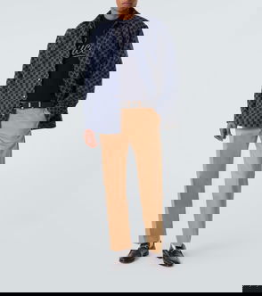 Gucci wool and cashmere-blend knit jumper. Pulls on. Relaxed fit, crewneck, long sleeves, purl knit signature Web stripe trims.