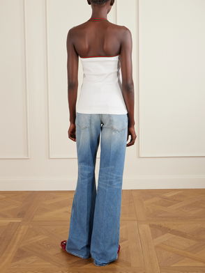 The striped webbing trim on Gucci's tank has been a house signature since the 1950s. It's made from stretch-cotton jersey that's ribbed to enhance the close fit and has a deep scoop neckline. Take cues from the Spring '25 runway and style yours with relaxed tailoring.