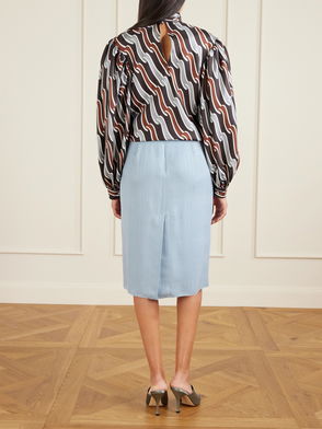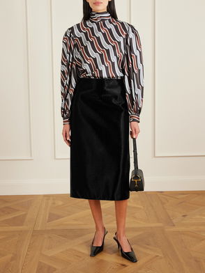 Gucci’s midi skirt is made in Italy from a wool blend with an elasticated waistband for comfort. Shaped in a trumpet silhouette, the design offers a structured yet fluid look rooted in refined tailoring.