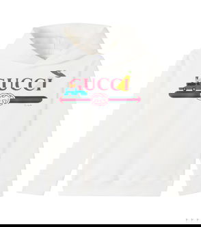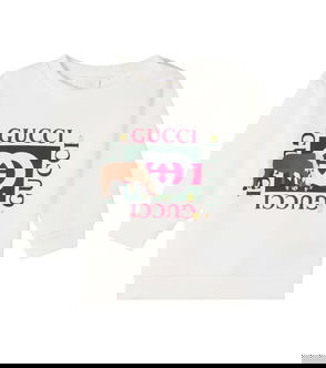 Your baby will enjoy a standout wardrobe from the very first days with this Gucci Kids sweatshirt. Crafted from soft cotton fleece, the piece features an embroidered Web Stripe and a printed motif designed in collaboration with Euan Roberts.