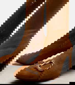 Made in a panelled construction with gold hardware and a slender harness strap, these black and brown leather Zelda boots reflect Gucci's equestrian style.