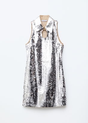 This mini dress is designed from a sequined fabrication with an irresistibly smooth charmeuse lining to the split 3⁄4 length sleeves. This style wraps across the body, tying at the side for a draped finish.