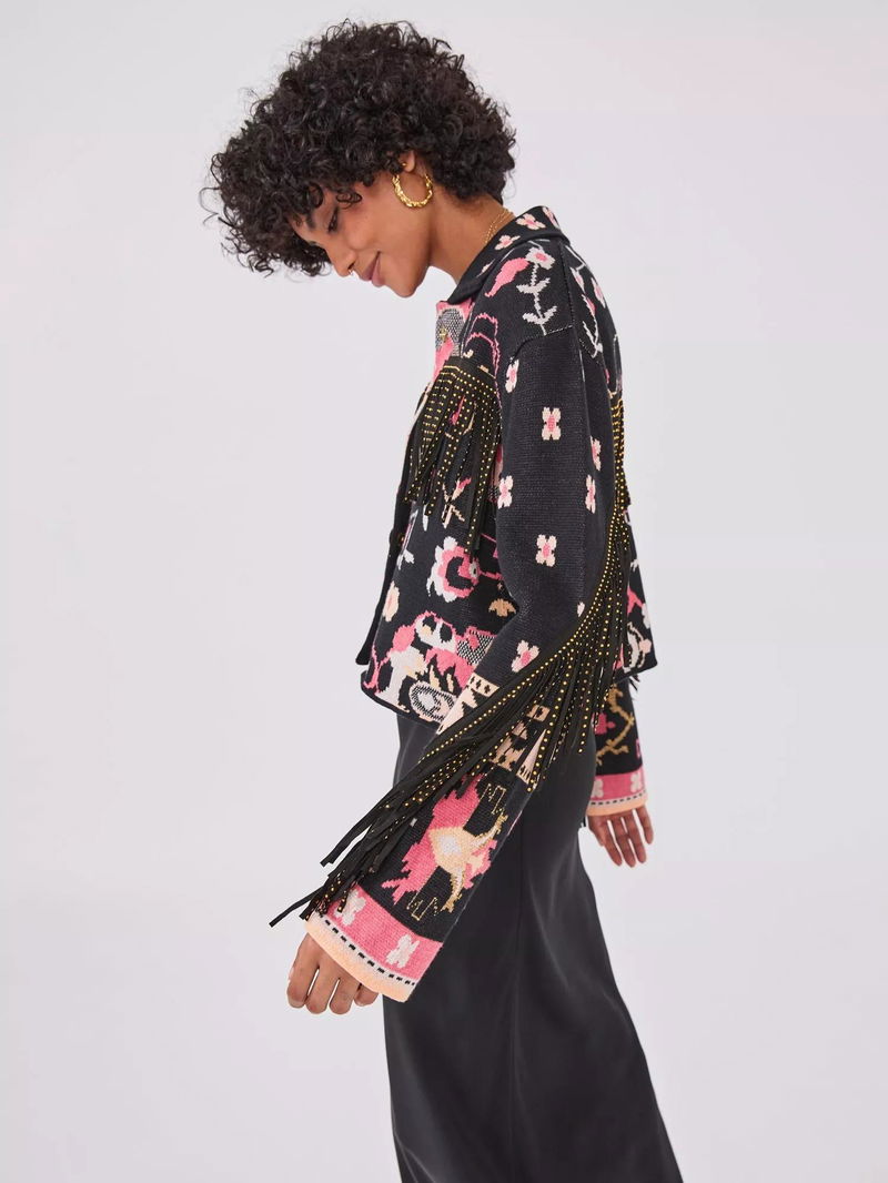 A trip to Asia inspired Hayley Menzies to create her eponymous label, originally sold at Portobello Market before launching online. Ethically produced collections incorporate printed silk dresses, jacquard knitwear and jackets, t-shirts and palazzo pants, with a globe-trotting, bohemian aesthetic that transcends trends and seasons.