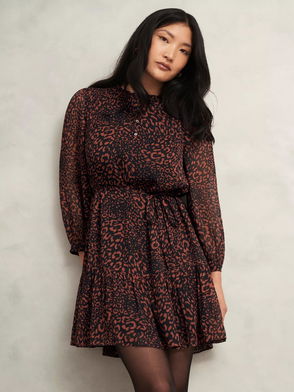 Make every daytime moment count in this fit and flare midi dress. The animal pattern and V-neck show off your personality while the silk blend feels luxurious yet comfortable, letting you stand out wherever you go.