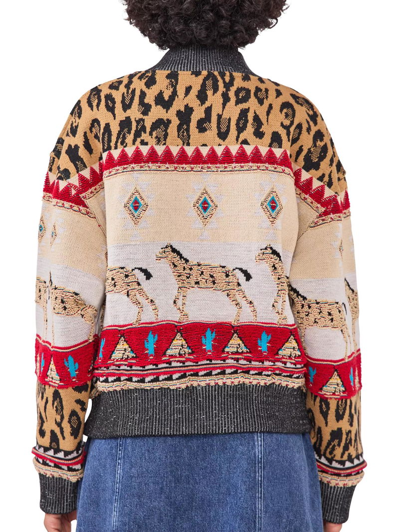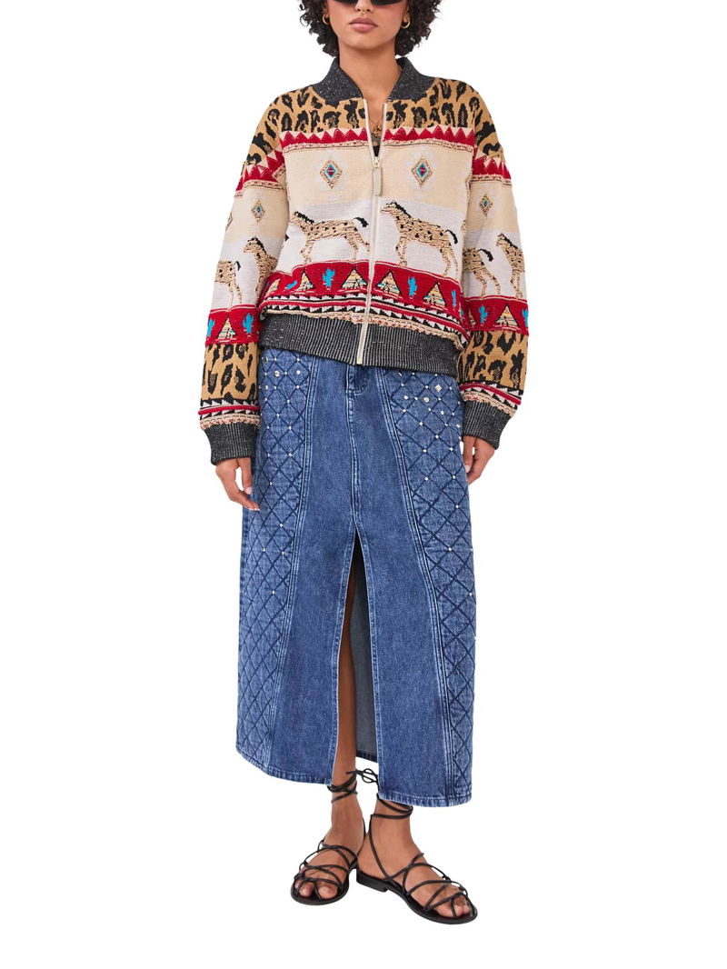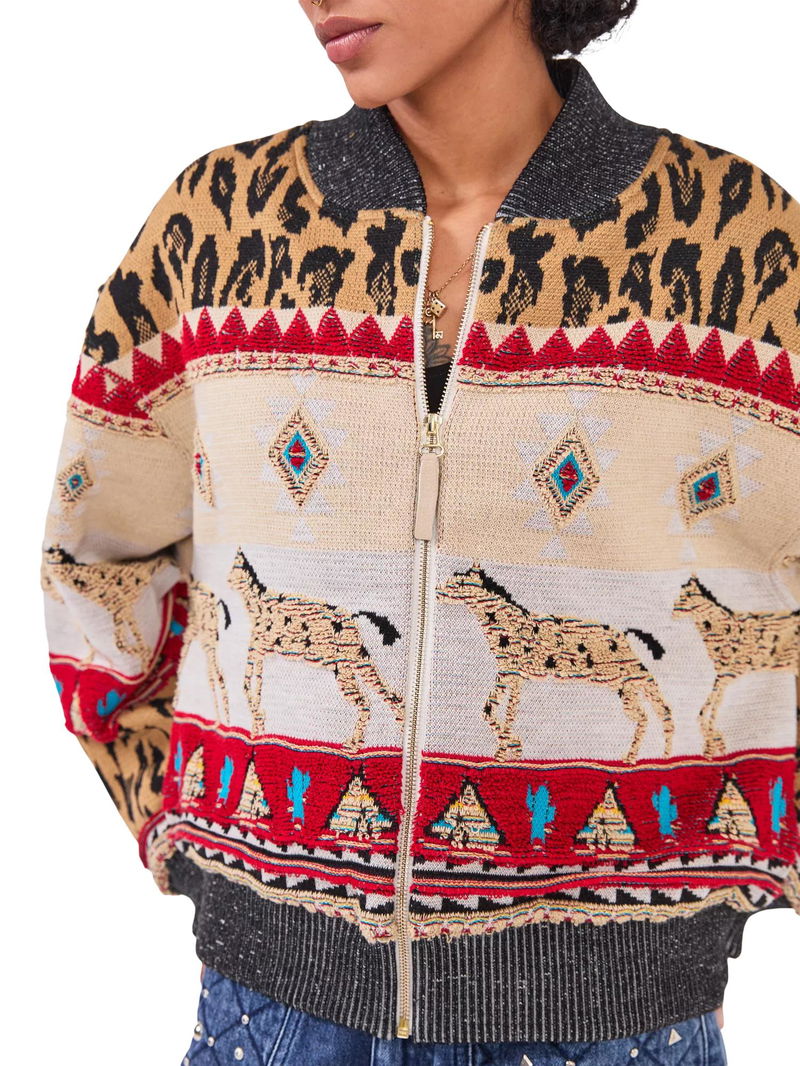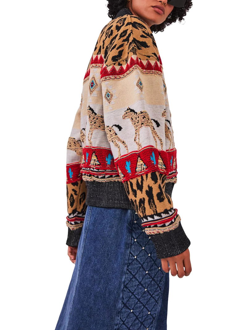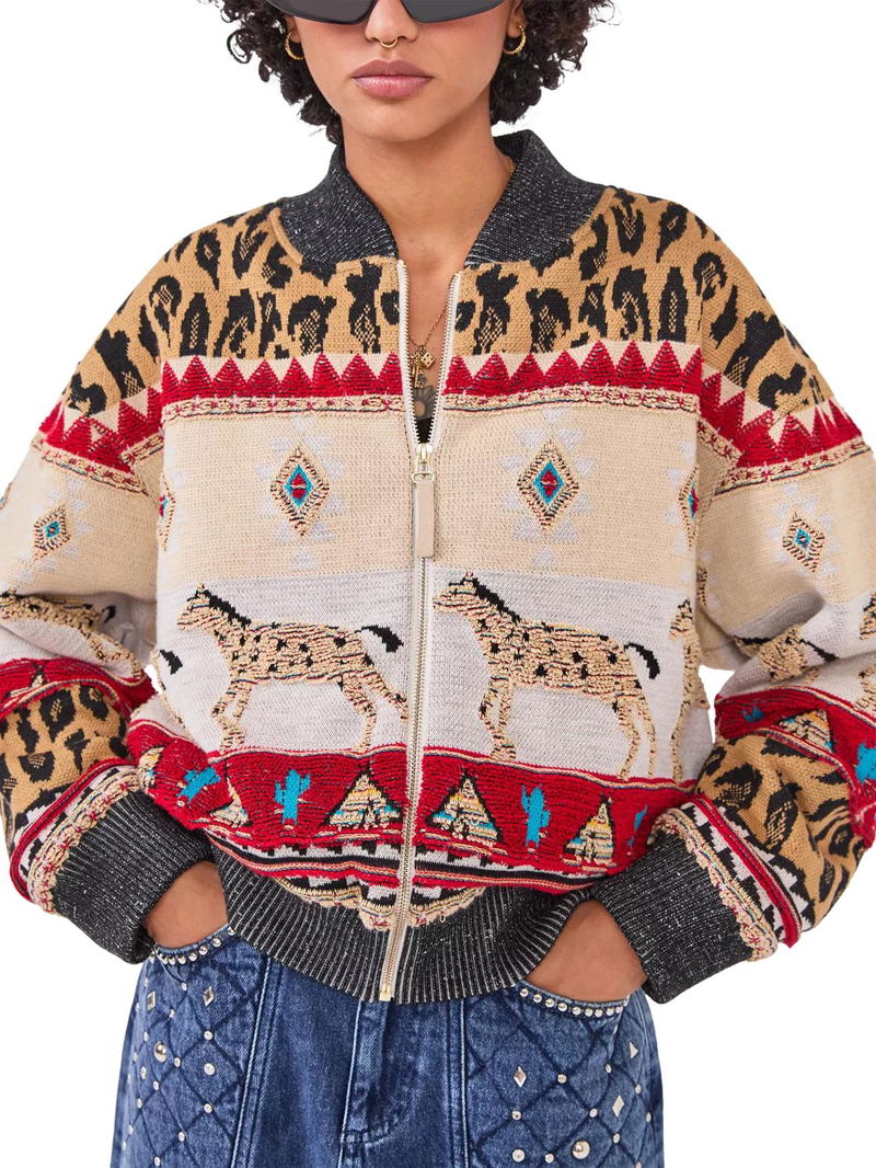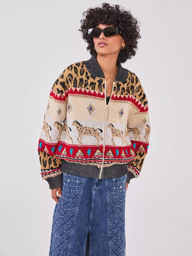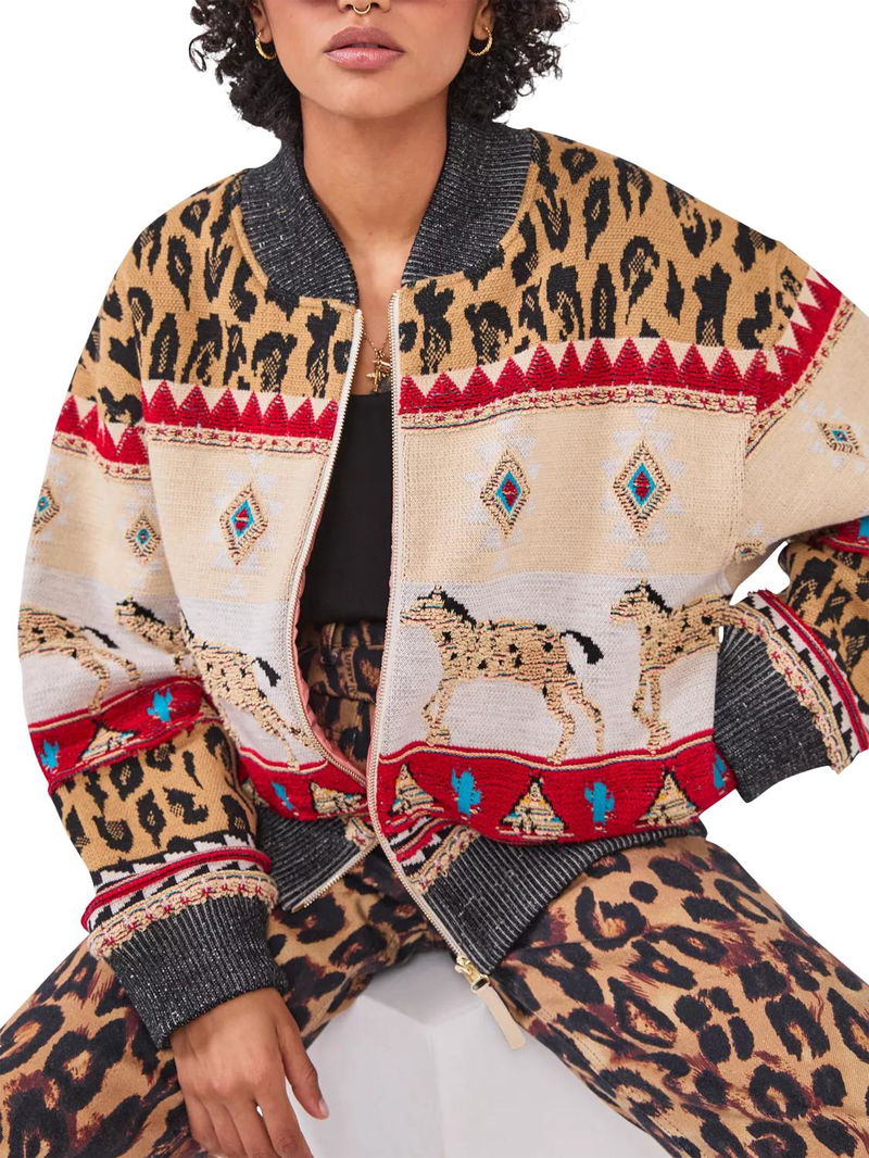 Spun from a wool rich blend with an intricate tapestry design, this bomber jacket from Hayley Menzies makes for a standout addition to your outerwear collection.