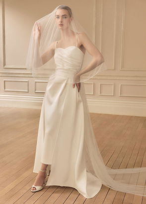 Dress, Wool-twill, Adjustable straps, Asymmetric hem, Concealed hook and zip fastening at side, Fully lined, Mid-weight, non-stretchy fabric.