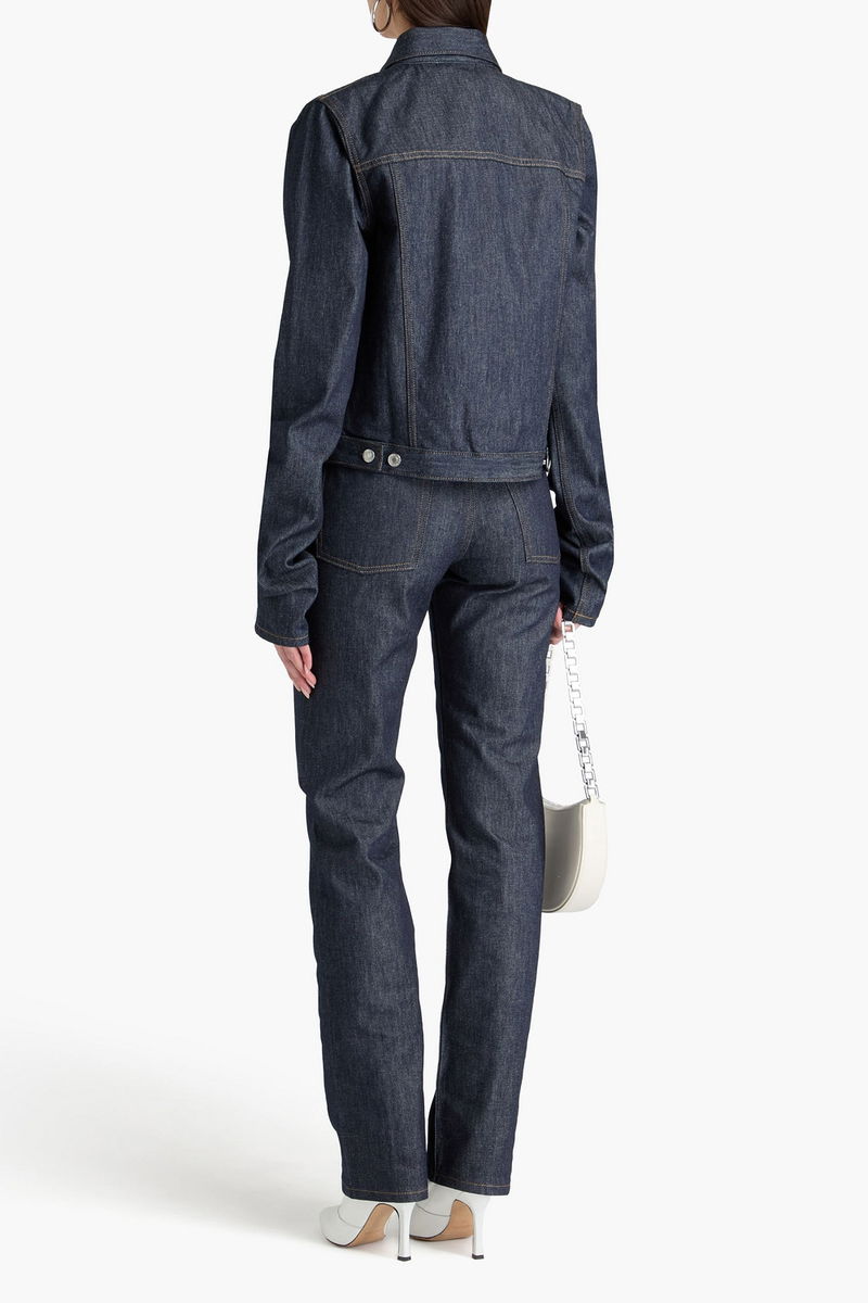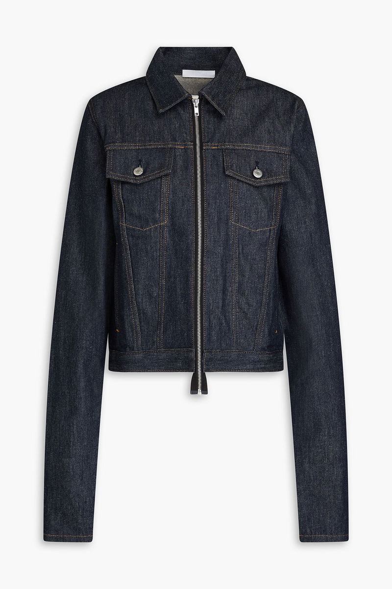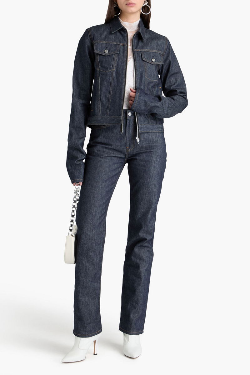 Jacket, Denim, Buttoned waist tabs, Folded cuffs, Breast pockets, Two front slit pockets, Zip fastening through front, Mid-weight, non-stretchy fabric.