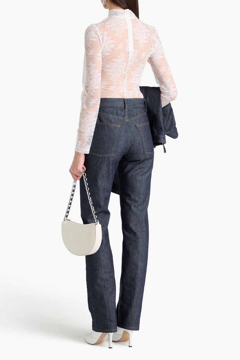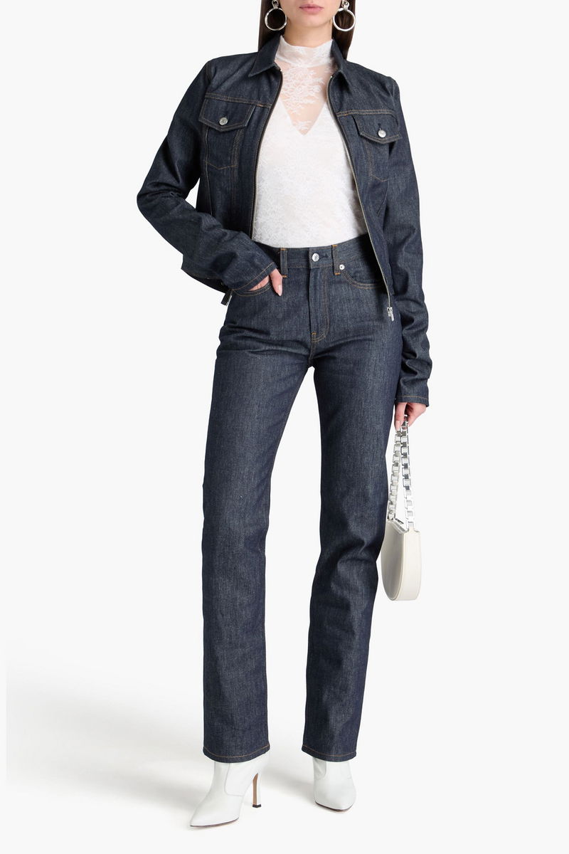Straight-leg jeans, Denim, Belt loops, High-rise cut, Five pockets, Button and concealed zip fastening at front.
