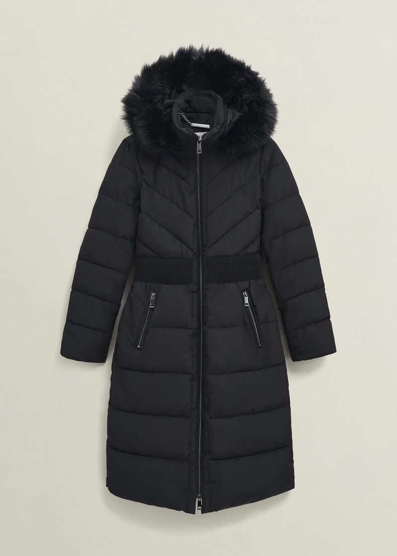 Expertly designed for a flattering fit, the longline Amalie coat has purposefully-placed padding and waist detailing for maximum impact.