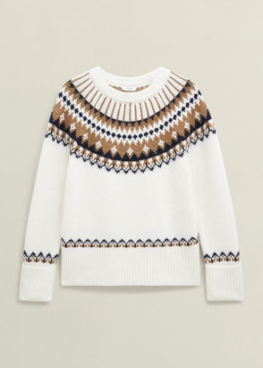 An essential for every cold-weather wardrobe, the Anya jumper imbues your collection with traditional Fair Isle and super-soft wool.
