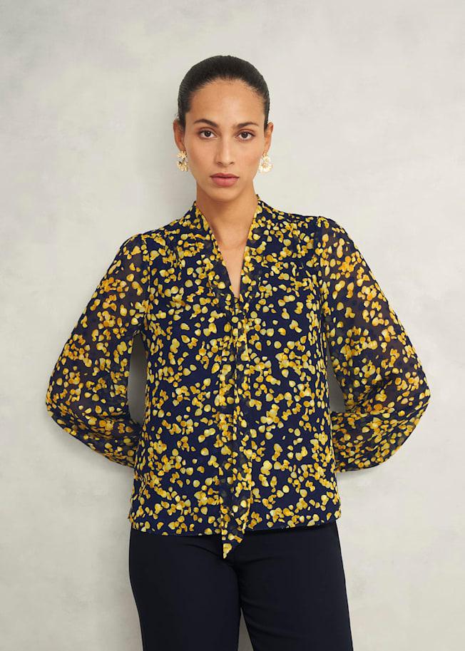 The perfect blend of elegance and elevated, the Aria blouse exudes femininity with a scattered petal print and chic pussybow neckline.
