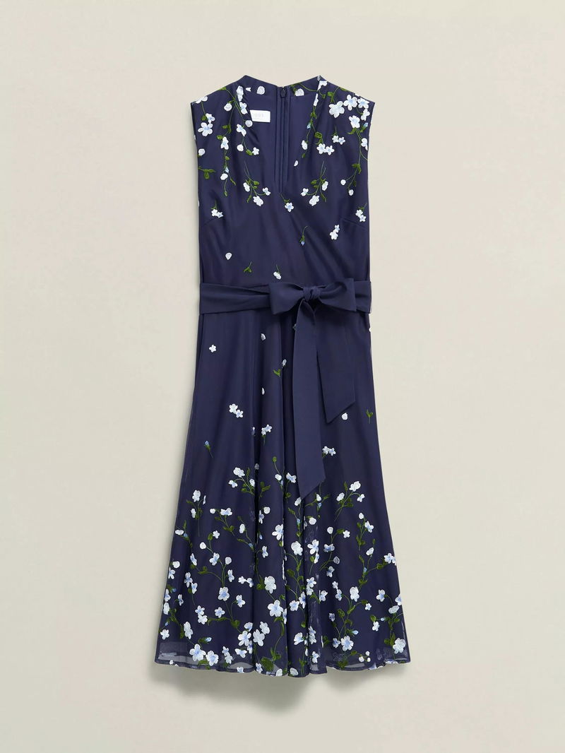 Aria Floral Embroidered Flare Knee Length Dress