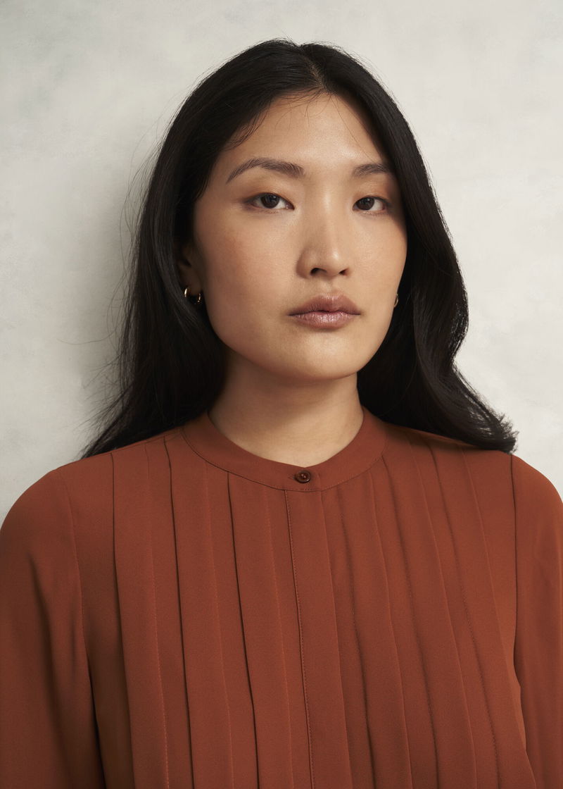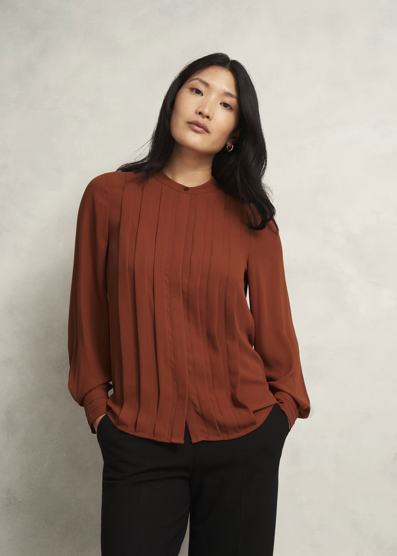 Built with pleats and volume sleeves for a contemporary edge, the Arizona blouse serves a transeasonal layer for your weekly rotation.