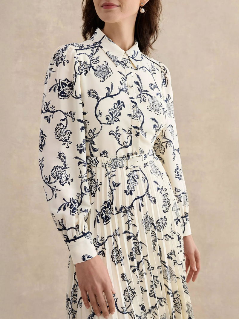Ashleen Paisley Shirt Dress, Cream/Midnight