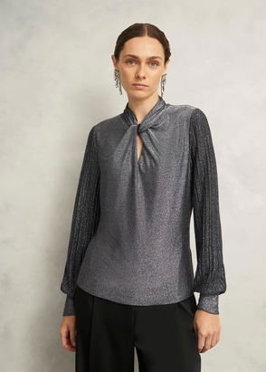 Combining a soft, comfortable jersey body with a chic twist neck and sheer georgette sleeves, the Ashley top is the perfect day-to-night piece.