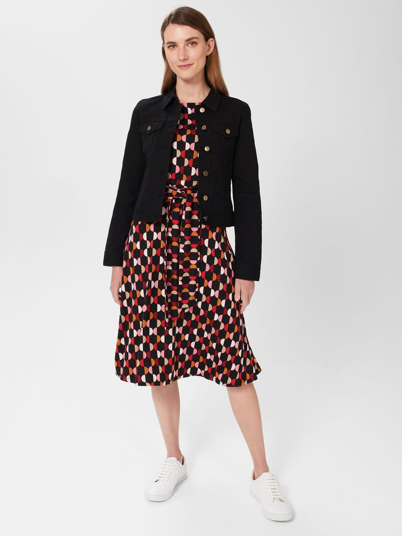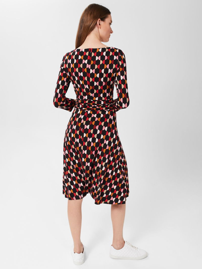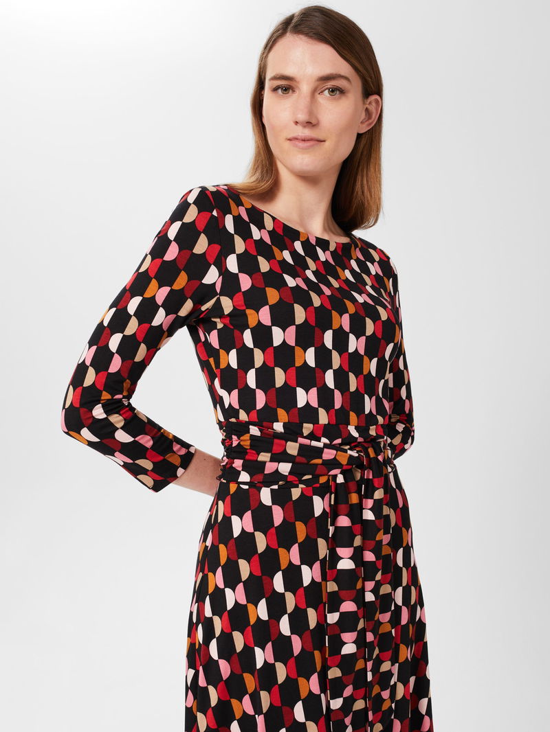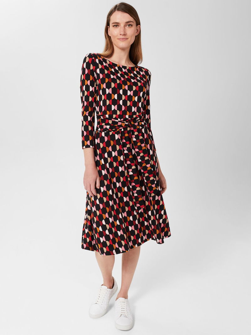 In a playful swing shape, this midi dress by Hobbs boasts a geometric print. With a round neckline and three-quarter length sleeves, this piece is a care-free option for daytime dressing.