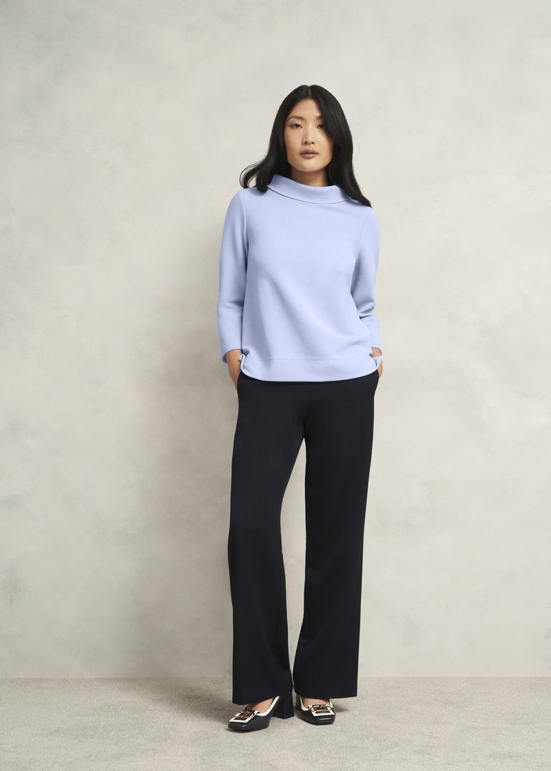 Returning in a transeasonal powder blue, the Betsy top fuses an elegant neck with a relaxed fit for everyday ease.