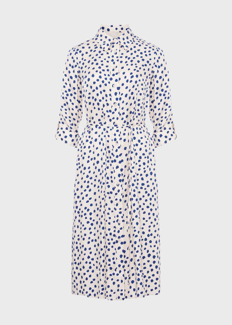 Featuring a playful spot print and an elegant silhouette, the Cali shirt dress will instantly uplift your new season wardrobe.