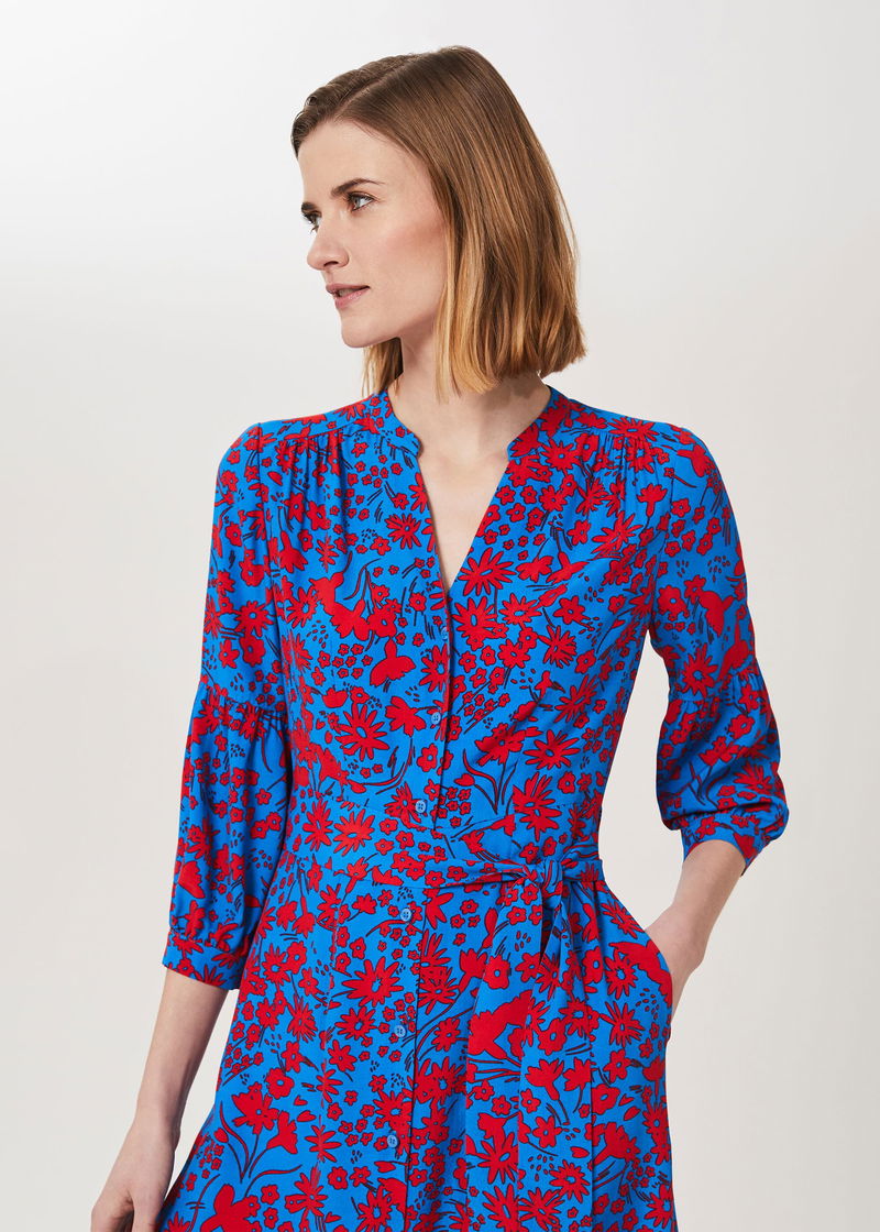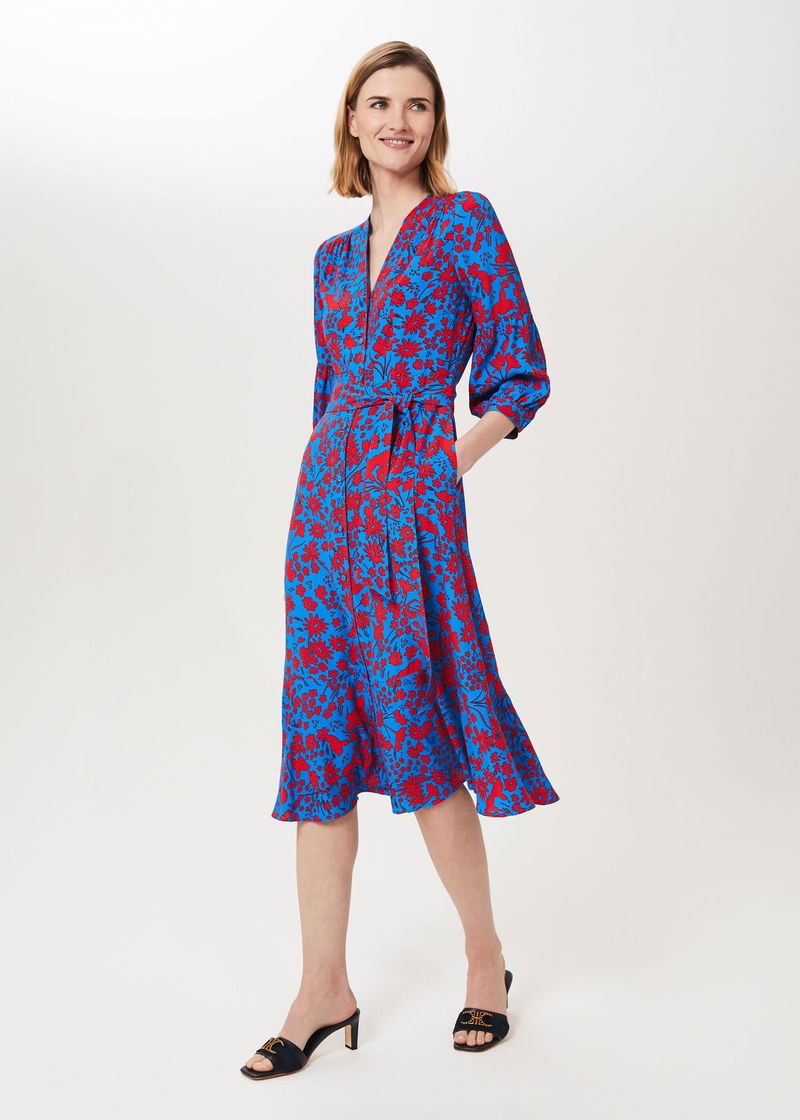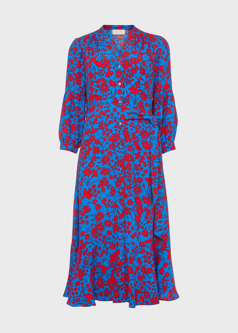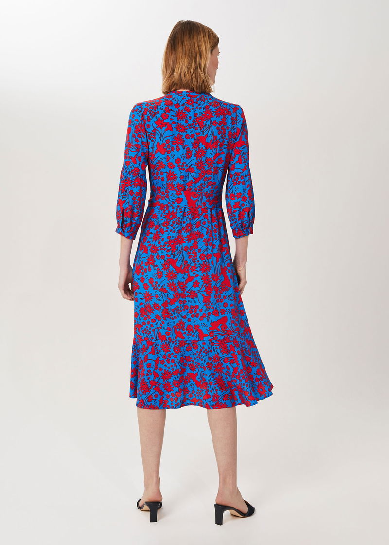 With its uplifting print and flattering shape, the Carla dress is guaranteed to spark joy every time you wear it. Falling to a modern midi length with a feminine fluted hem, it's designed with a notch neck and three quarter bell sleeves.