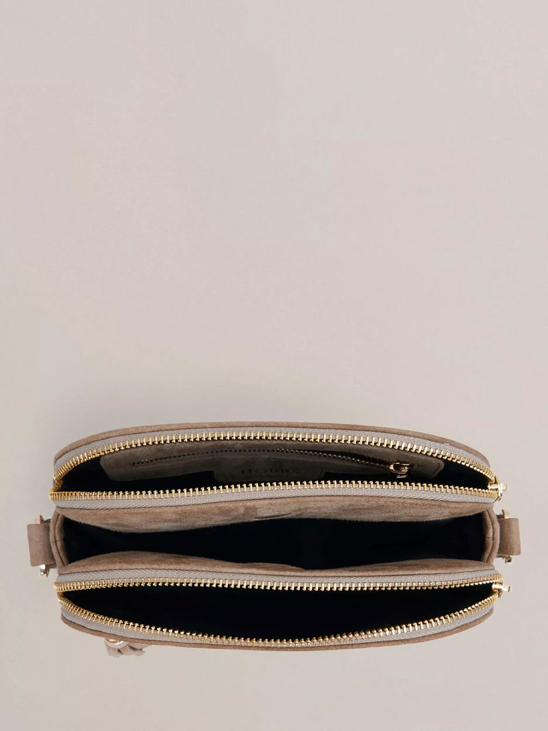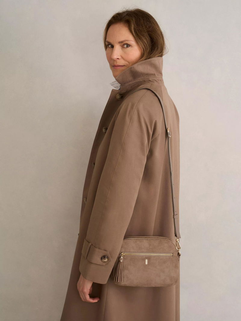 The Carlton bag returns in a luxurious, transeasonal suede finish. Wear as a cross-body, over the shoulder or refreshed with different straps.
