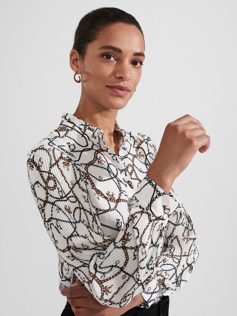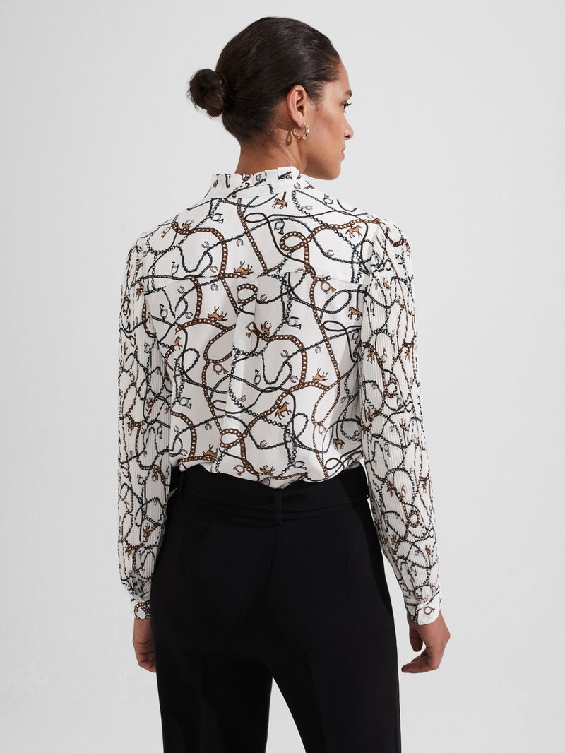 Bringing a neat addition to your wardrobe, this blouse from Hobbs makes an impact with its abstract print. Framed with a collar and long sleeves, it is made from soft fabric that withstands creasing and is sure to act as the cornerstone of your everyday looks.