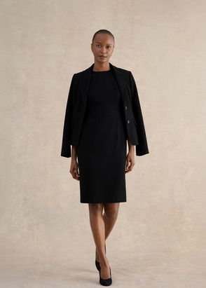 A tried-and-tested classic, this knitted knee length skater dress from Hobbs features a round neckline, elbow length sleeves and a fitted bodice. Finished with embellished button detailing through the front.