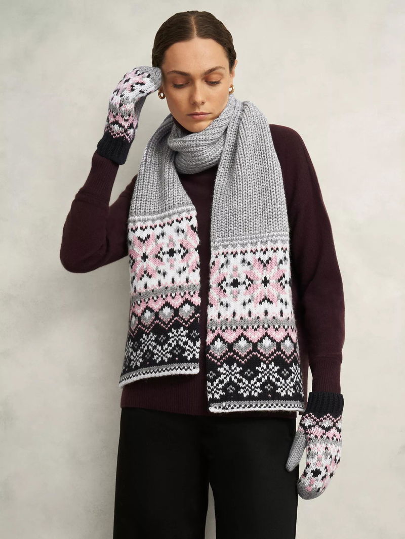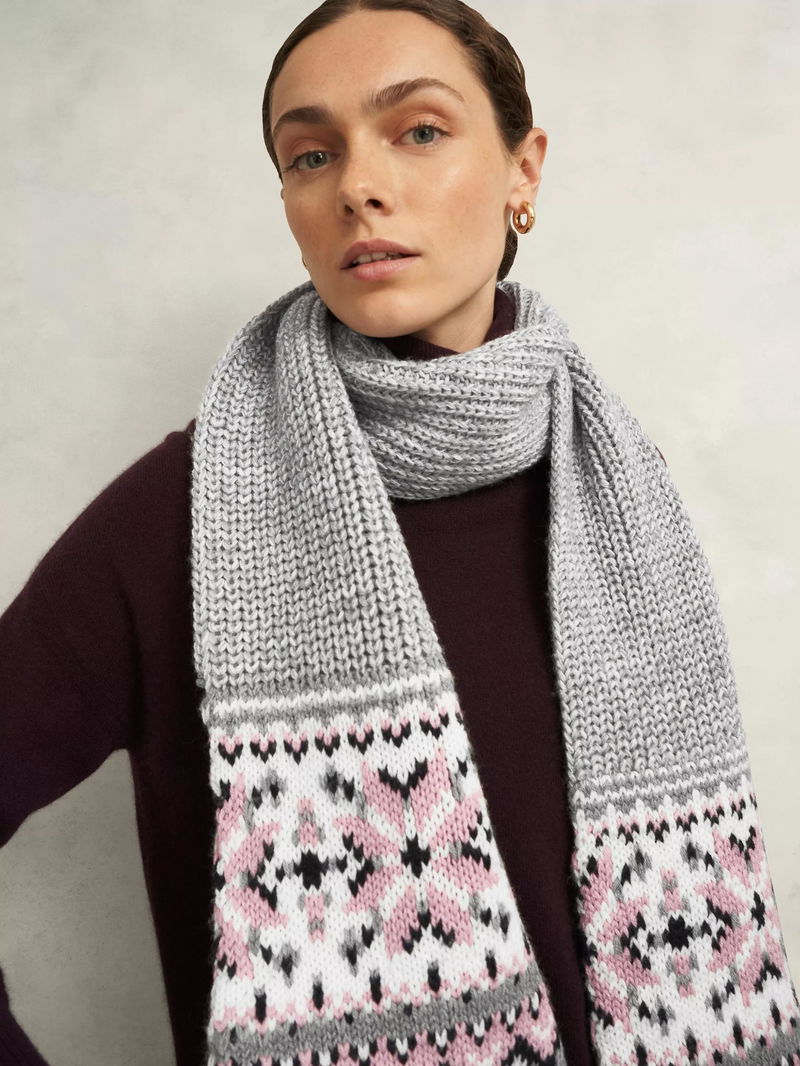 Wrapping up against the elements, this wool blend scarf from Hobbs is decorated in a traditional Fair Isle design for a fun way to enliven your looks.