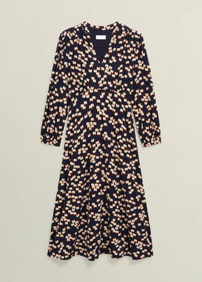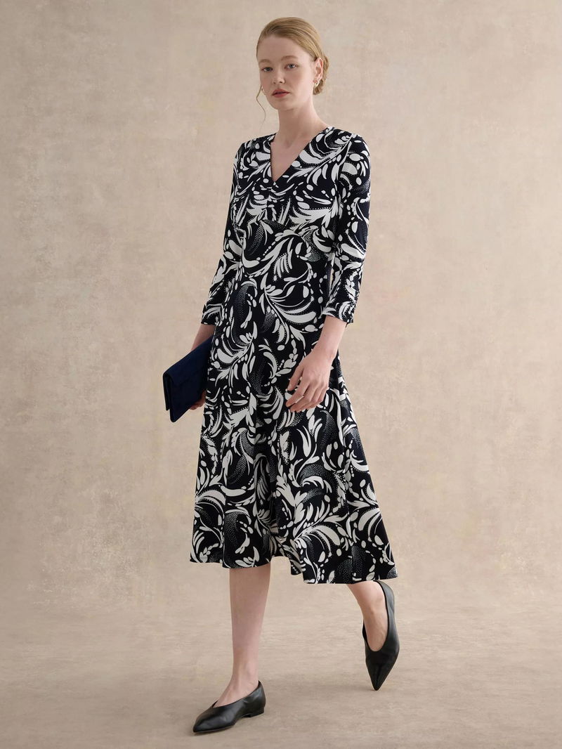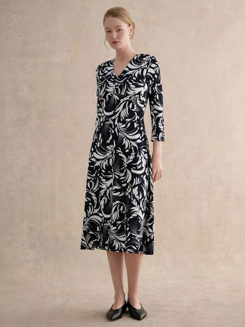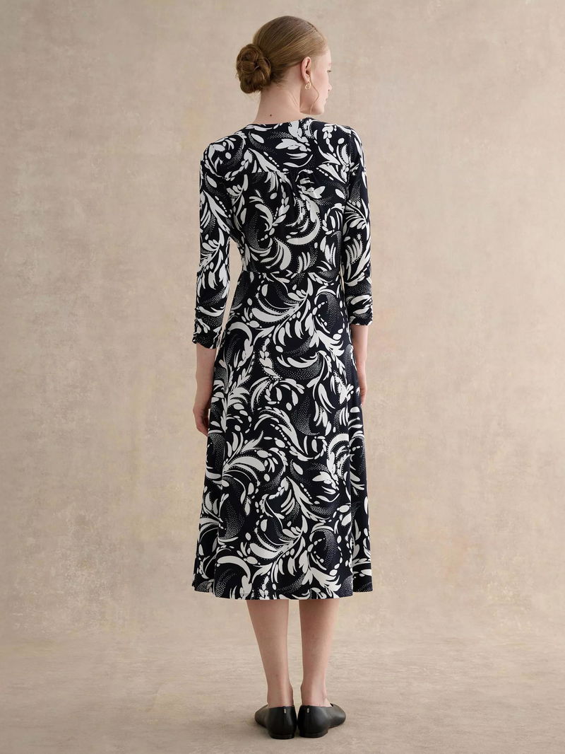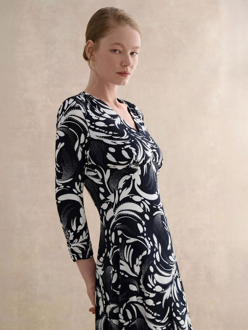 Deborah Floral Jersey Dress, Navy/Ivory